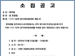 [지회공지] 지회11기 1년차 (금속 14기 1년) 정기대의원대회 개최 공고