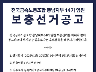 전국금속노동조합 충남지부 14기 임원 보충선거공고
